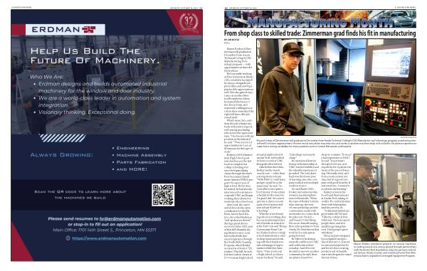 What’ s more, he’ s confident about his future in a trade with plenty of good, well-paying machining jobs across the region and state.“ I feel secure with my position in the industry,” he said.“ There are a lot of opportunities in Central Minnesota for this type of work.”
