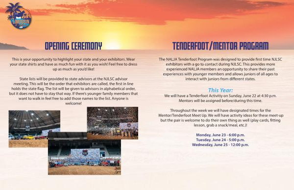 The NALJA Tenderfoot Program was designed to provide first time NJLSC exhibitors with a go to contact during NJLSC. This provides more experienced NALJA members an opportunity to share their past experiences with younger members and allows juniors of all ages to interact with juniors from different states.