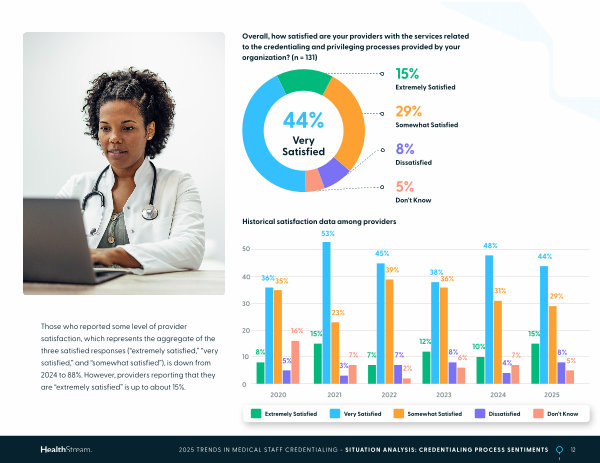 Those who reported some level of provider satisfaction, which represents the aggregate of the three satisfied responses(“ extremely satisfied,”“ very satisfied,” and“ somewhat satisfied”), is down from 2024 to 88 %. However, providers reporting that they are“ extremely satisfied” is up to about 15 %. |