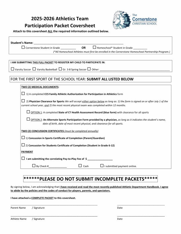 2025-2026 Athletics Team Participation Packet Coversheet Attach to this coversheet ALL the required information outlined below.