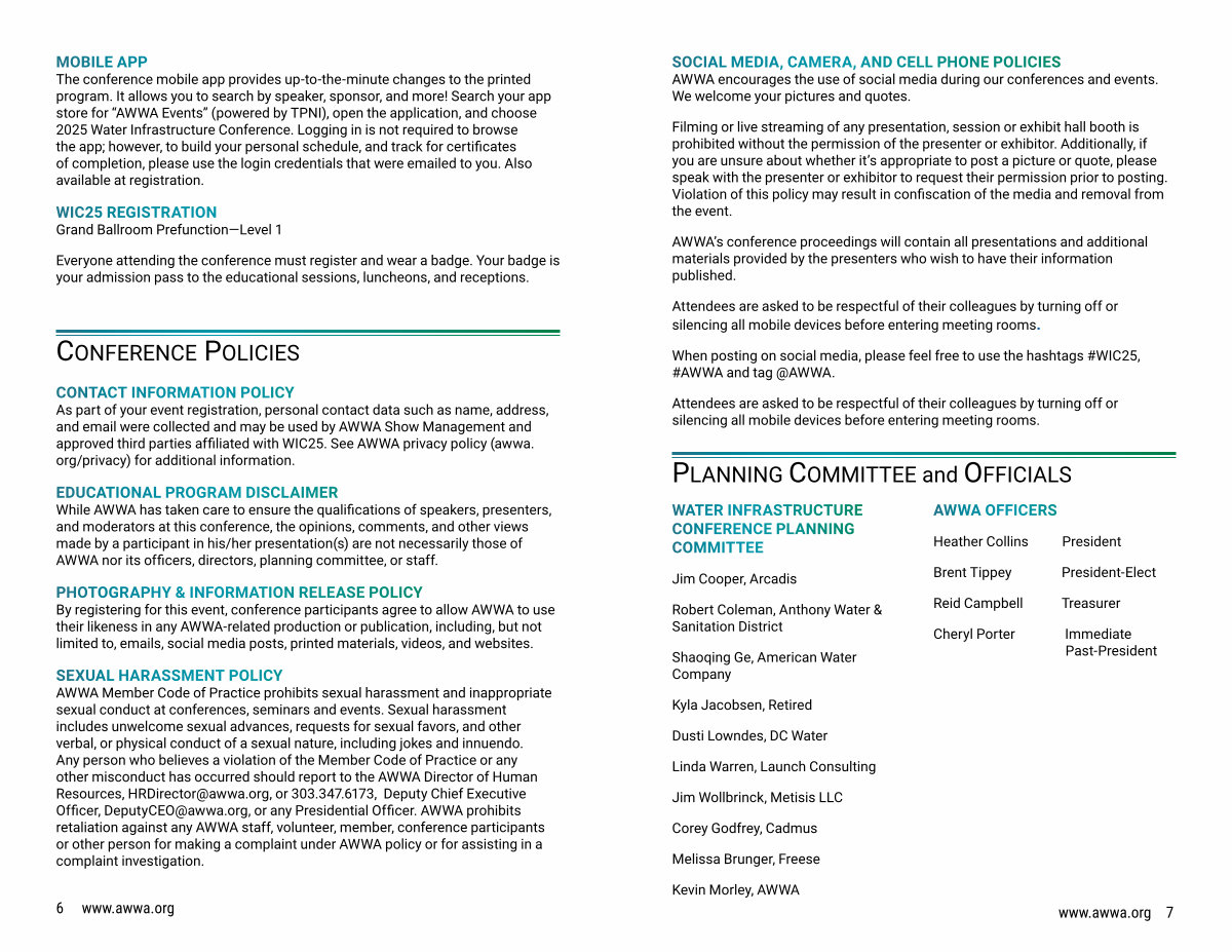 When posting on social media, please feel free to use the hashtags # WIC25, # AWWA and tag @ AWWA.