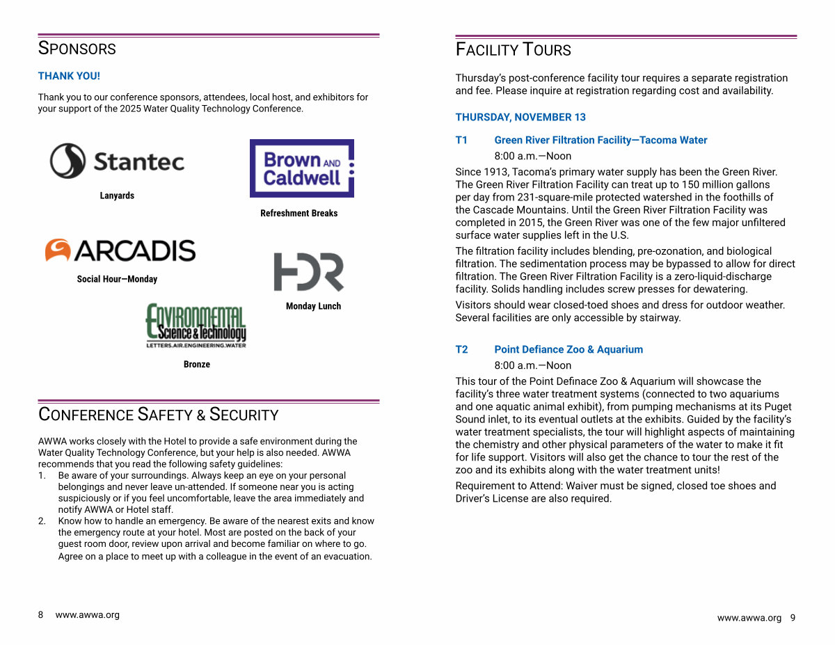 Thank you to our conference sponsors, attendees, local host, and exhibitors for your support of the 2025 Water Quality Technology Conference.