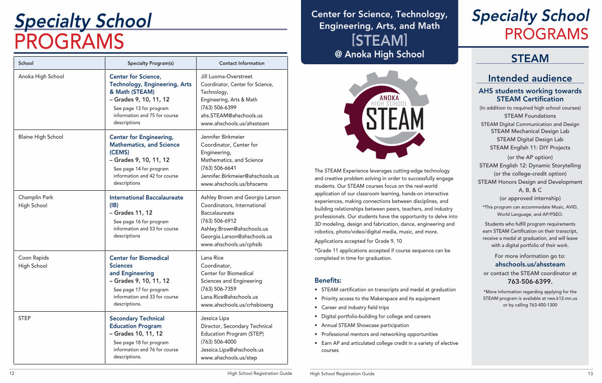 For more information go to: ahschools. us / ahssteam or contact the STEAM coordinator at 763-506-6399.