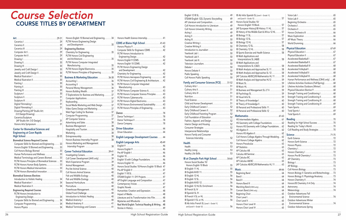 Physical Education....................... 67-69 Physical Education I......................... 67 Physical Education II........................ 67 Accelerated Basketball I..................... 67 Accelerated Basketball II..................... 67 Accelerated Basketball III.................... 68 Accelerated Volleyball I...................... 68 Accelerated Volleyball II..................... 68 Accelerated Volleyball III..................... 68 Human Performance and Wellness [ CRHS only ] … 68 Lifetime Activities Outdoors [ Fall / Spring ]........ 68 Lifetime Activities Outdoors [ Winter ]........... 68 Physical Education Elective 9................. 68 Strength Training and Conditioning I........... 68 Strength Training and Conditioning II........... 68 Strength Training and Conditioning III.......... 68 Strength Training and Conditioning IV.......... 69 Team Sports............................... 69 Total Sports I.............................. 69 Total Sports II.............................. 69