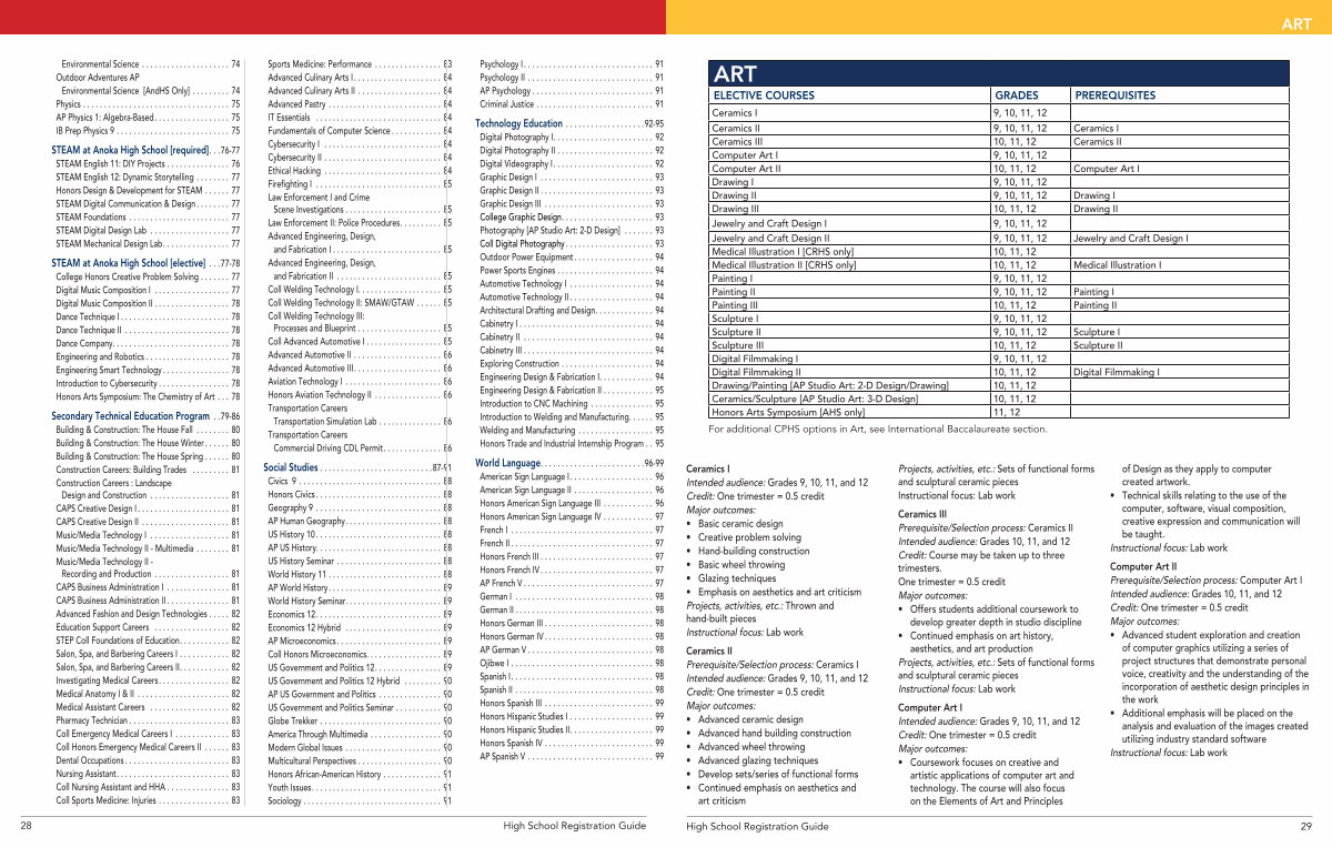 Ceramics II Prerequisite / Selection process: Ceramics I Intended audience: Grades 9, 10, 11, and 12 Credit: One trimester = 0.5 credit Major outcomes:
