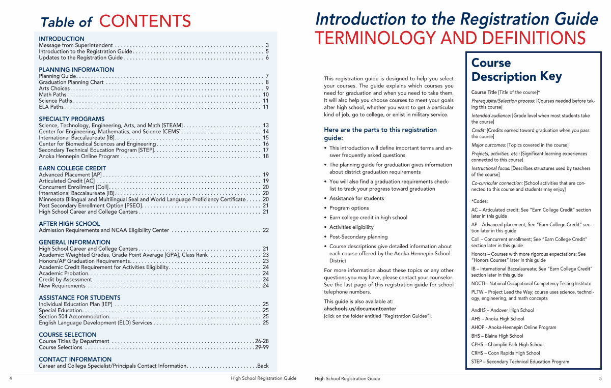 SPECIALTY PROGRAMS Science, Technology, Engineering, Arts, and Math [ STEAM ].......................... 13 Center for Engineering, Mathematics, and Science [ CEMS ]........................... 14 International Baccalaureate [ IB ]................................................. 15 Center for Biomedical Sciences and Engineering................................... 16 Secondary Technical Education Program [ STEP ].................................... 17 Anoka Hennepin Online Program............................................... 18