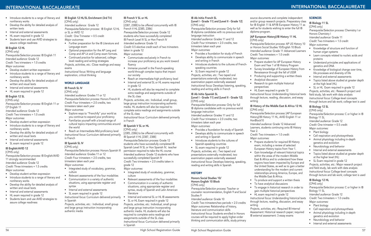 IB History of the Middle East & Africa 12 HL [ CPHS only ] Prerequisite / Selection process: [ AP European History ]/ IB History 11 HL, AVID English 11 or HonBlock10 Intended audience: Grade 12 Advanced Learners, students continuing onto IB History Year 2. Credit: Two trimesters = 1.0 credit Major outcomes: