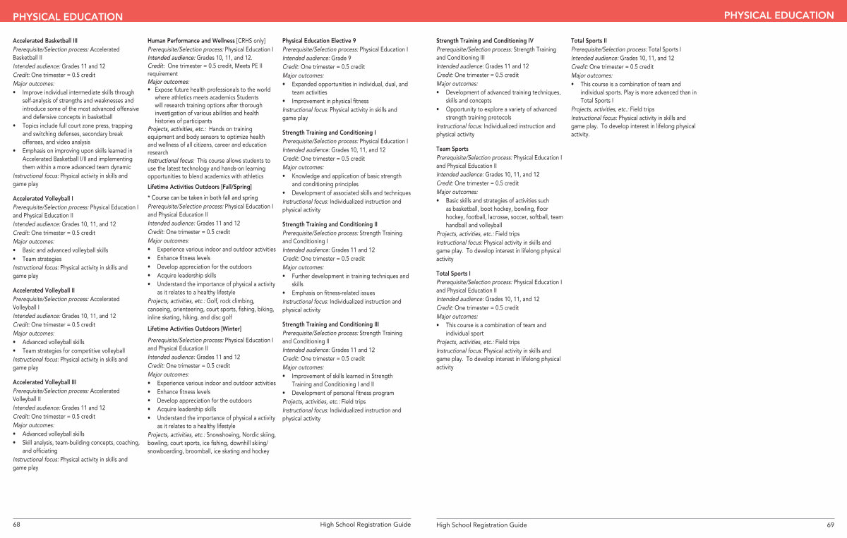 Team Sports Prerequisite / Selection process: Physical Education I and Physical Education II Intended audience: Grades 10, 11, and 12 Credit: One trimester = 0.5 credit Major outcomes:
