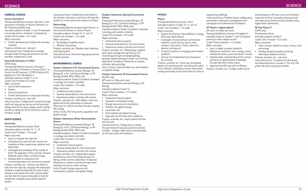 Physics Prerequisite / Selection process: None Intended audience: Grades 10, 11, and 12 Credit: Two trimesters = 1.0 credit Major outcomes: