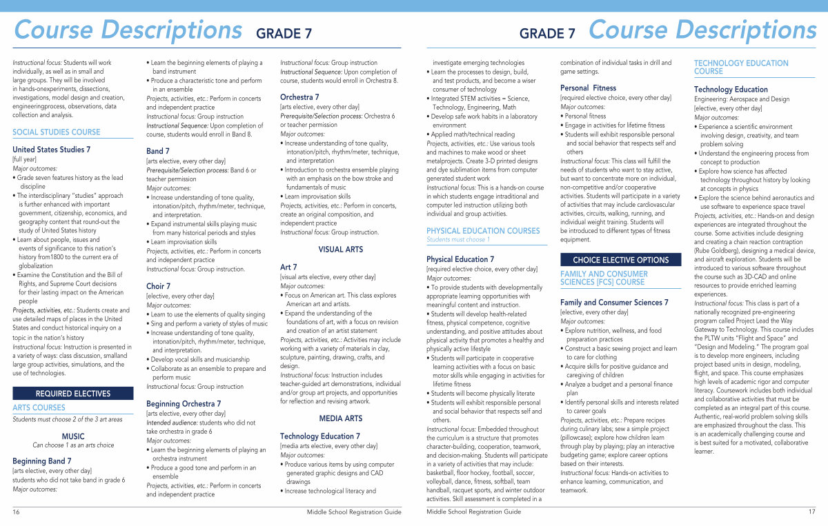 Projects, activities, etc.: Perform in concerts and independent practice Instructional focus: Group instruction Instructional Sequence: Upon completion of course, students would enroll in Band 8.