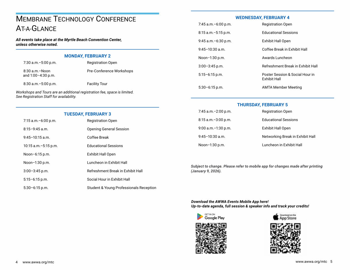MEMBRANE TECHNOLOGY CONFERENCE AT-A-GLANCE