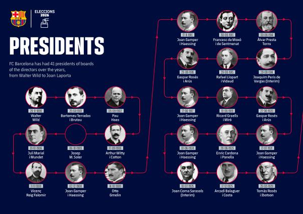 FC Barcelona has had 41 presidents of boards of the directors over the years, from Walter Wild to Joan Laporta