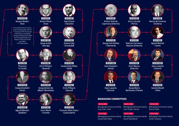 As a posthumous honour, from 16 November 1937 to 17 January 1939, the board of directors considered Josep Suñol( assassinated by Francoist troops on 6 August 1936) as the late president of FC Barcelona.
