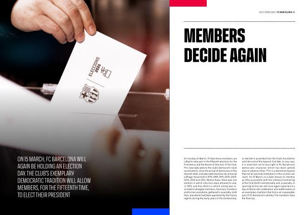 On Sunday 15 March, FC Barcelona members are called to take part in the fifteenth elections for the Presidency and the Board of Directors of the Club. This new date adds to the club’ s democratic track record which, since the arrival of democracy in the Spanish state, includes eight elections by universal suffrage: those held in 1978, 1989, 1997, 2000, 2003, 2010, 2015 and 2021. Before these, there was one election in which only men were allowed to vote, in 1953, and five others in which voting was restricted to delegate members, honorary members and former presidents, gathered in assembly. Until then, presidents had been appointed by the Franco regime during the early years of the dictatorship, or elected in assembly from the Club’ s foundation until the end of the Spanish Civil War. In any case, it is important not to lose sight of FC Barcelona’ s democratic character, which has been upheld even in adverse times. This is a distinctive feature that not all sporting institutions in the country can claim. On 15 March, on a date chosen to interfere as little as possible with the ordinary functioning of the Club( both institutionally and, especially, in sporting terms) we will once again experience a day of democratic celebration and reaffirmation of an exemplary tradition that forms an inseparable part of FC Barcelona’ s identity. The members have the final say.