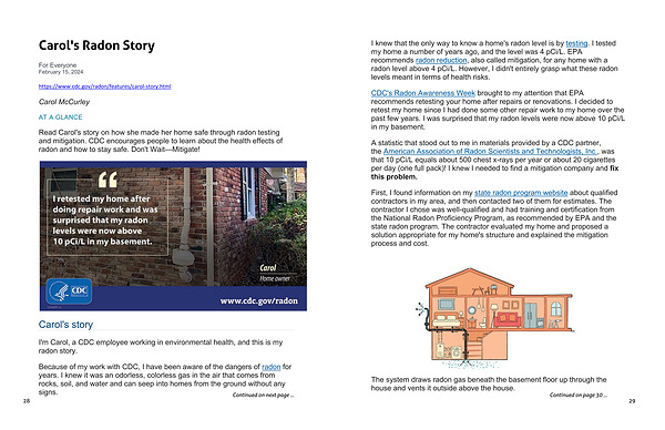 CDC ' s Radon Awareness Week brought to my attention that EPA recommends retesting your home after repairs or renovations. I decided to retest my home since I had done some other repair work to my home over the past few years. I was surprised that my radon levels were now above 10 pCi / L in my basement.