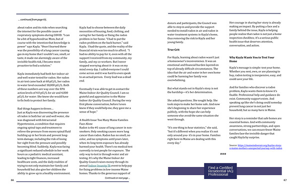Eventually I was able to get in contact the Maine Indoor Air Quality Council. I am so grateful and appreciative to the Maine Indoor Air Quality Council. During the very first phone conversation, before I even knew if they could help me, they gave me a sense of hope.”
