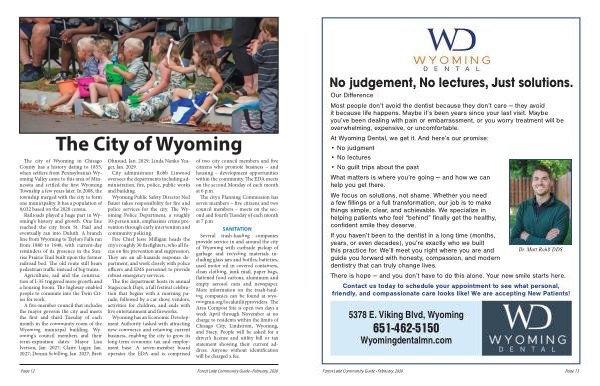 A five-member council that includes the mayor governs the city and meets the first and third Tuesday of each month in the community room of the Wyoming municipal building. Wyoming’ s council members and their term-expiration dates: Mayor Lisa Iverson, Jan. 2027; Claire Luger, Jan. 2027; Dennis Schilling, Jan. 2027; Brett