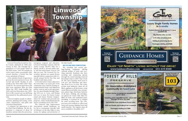 Linwood Township, located in Anoka County, celebrated its 150th anniversary in 2021. The township has a population of 5,334 people based on the 2020 census. Town life includes an active senior center, snowmobile club, several churches, a Family Fun Day event, and plenty of history.