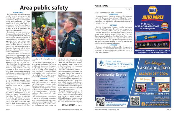 The Forest Lake Police Department looks forward to expanding the community-policing efforts and educating the public on crime prevention. Learn more about the department and what it offers citizens at its website at flpd. com or on Facebook at facebook. com / forestlakepolicedept.