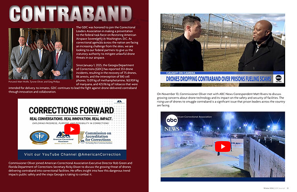 Commissioner Oliver joined American Correctional Association Executive Director Rob Green and Florida Department of Corrections Secretary Ricky Dixon to discuss the growing threat of drones delivering contraband into correctional facilities. He offers insight into how this dangerous trend impacts public safety and the steps Georgia is taking to combat it.