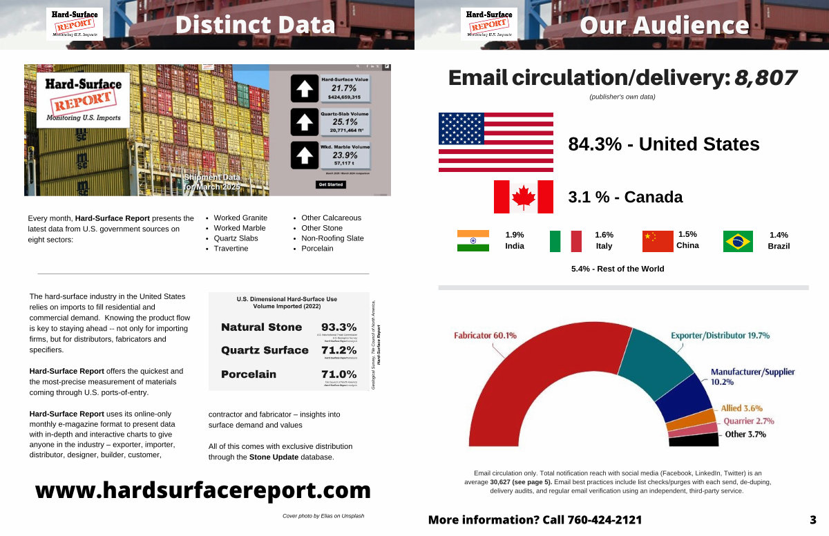 Hard-Surface Report uses its online-only monthly e-magazine format to present data with in-depth and interactive charts to give anyone in the industry – exporter, importer, distributor, designer, builder, customer, contractor and fabricator – insights into surface demand and values