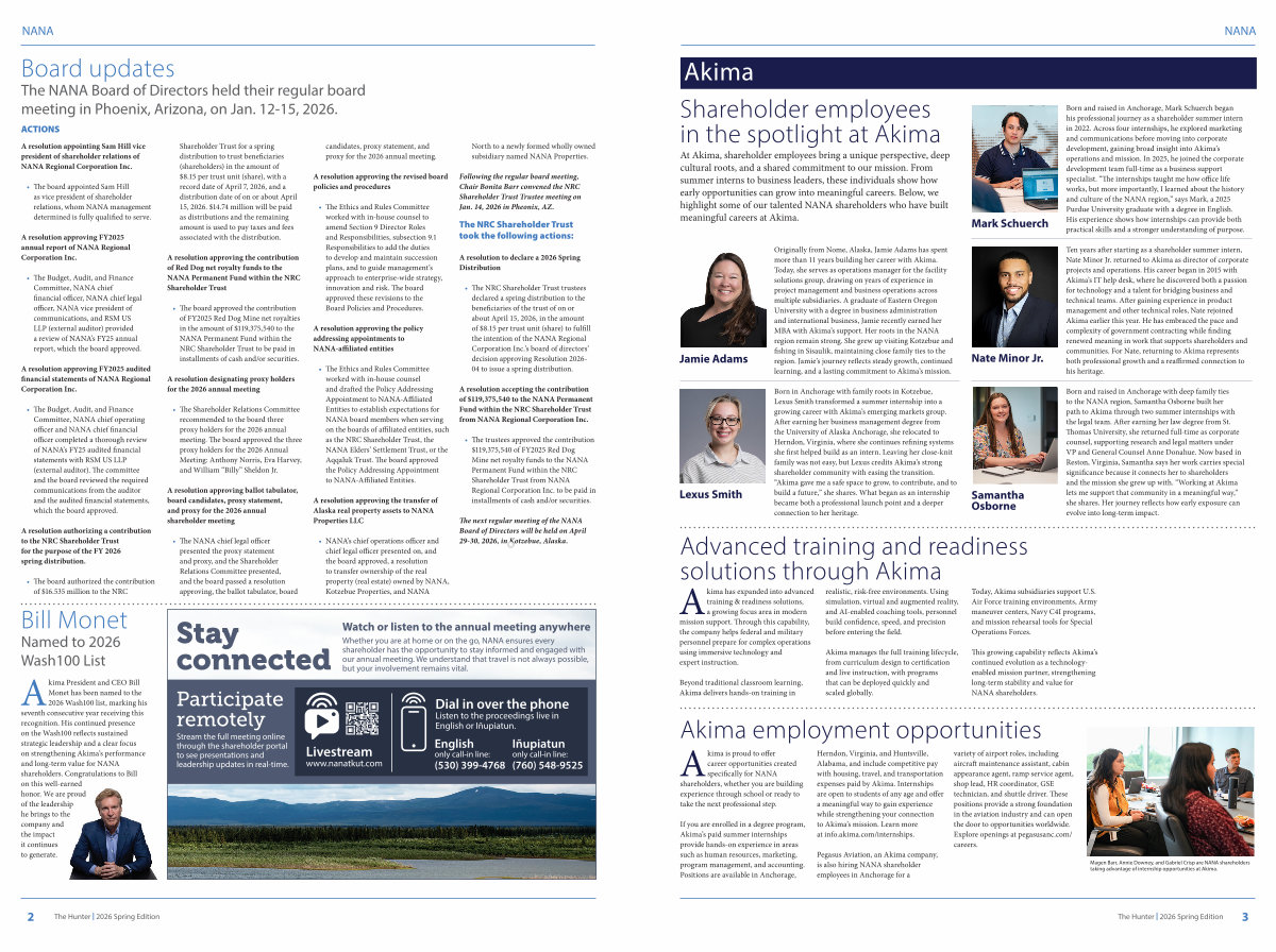 This growing capability reflects Akima’ s continued evolution as a technologyenabled mission partner, strengthening long-term stability and value for NANA shareholders.