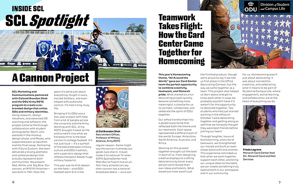 This year’ s Homecoming theme,“ All Around the World,” gave our Card Center team the perfect opportunity to combine creativity, teamwork, and Monarch pride. What started as a fun decorating project quickly became something more meaningful: a chance for us to connect, collaborate, and celebrate the spirit of ODU together. Our office transformed into a global experience that reflected both the theme and our teamwork. Each space represented a different part of the world: Europe, Antarctica, North America, Australia, and Africa. Working on this project together brought out the best in each of us. From designing creative displays to crafting decorations by hand, every person contributed their own ideas and talents. What stood out most wasn’ t just the finished product, though we’ re proud to say it earned us first place in the Office Decorating Contest, but the way we came together as a team. This project also helped us learn about and get to know each other in ways we probably wouldn’ t have if it weren’ t for this opportunity to decorate together. Two students who had just started working in the office on October 1 were decorating together and getting along so well that we honestly thought they were best friends before joining our team! Through laughter, hours of brainstorming, and a lot of teamwork, we strengthened our morale and built an even closer bond with one another. This experience reminded us that when we work together, support each other, and bring our unique ideas to the table, we can create something truly special both in our workspace and in our community. For us, Homecoming wasn’ t just about decorating; it was about connection, creativity, and celebrating what it means to be part of Student & Campus Life, where engagement, active learning, and collaboration are at the heart of everything we do.