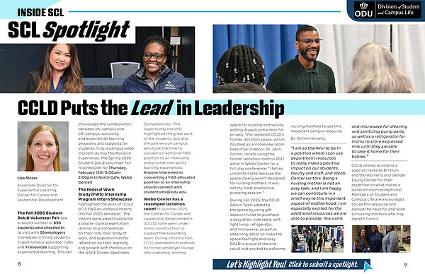 CCLD wishes to extend a special thanks to Bri Elum and the Women’s and Gender Equity Center for their expertise on what makes a lactation room exceptional. Members of Student and Campus Life are encouraged to use this resource and spread the news far and wide to nursing mothers who may benefit from it.