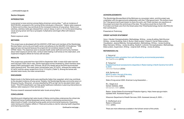 The Stockbridge-Munsee Band of the Mohicans is a sovereign nation, and this project was undertaken with the approval and collaboration with their Tribal government. The authors have the Tribal government ' s permission to share this work, and Tribal members are coauthors on this project and retain the control / use of the data. The authors would like to thank Will Funmaker and Kade Lenz from the Great Lakes Inter-Tribal Epidemiology Center( GLITEC) for their contributions.