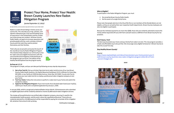 Please note that people who live in the City of De Pere or are members of the Oneida Nation are not eligible, as they are served by their own respective health departments. Brown County employees are also not eligible to participate.
