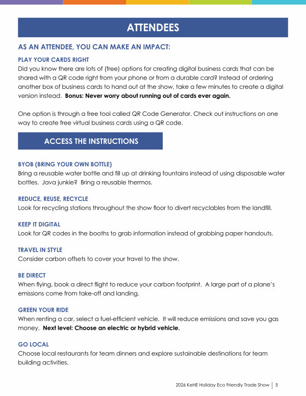 KEEP IT DIGITAL Look for QR codes in the booths to grab information instead of grabbing paper handouts.