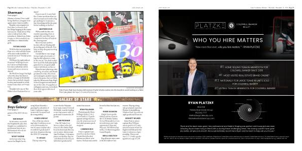 Wayzata goalie Ryan Pellinger had a 13-8-3 record and a 2.72 goalsagainst average last season. He returns as one of the Lake’ s premier puck stoppers.