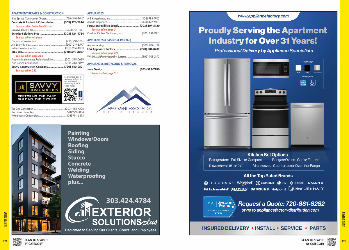 See our ad on page 271 WASH MultiFamily Laundry Systems..........................( 303) 901-2193