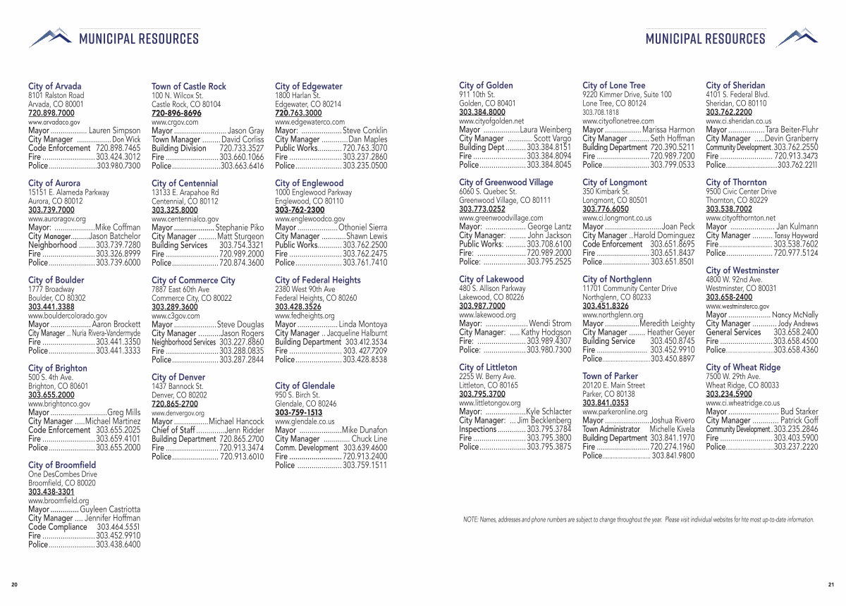City of Littleton 2255 W. Berry Ave. Littleton, CO 80165 303.795.3700 www. littletongov. org Mayor:..................... Kyle Schlacter City Manager:... Jim Becklenberg Inspections.............. 303.795.3784 Fire........................... 303.795.3800 Police........................ 303.795.3875