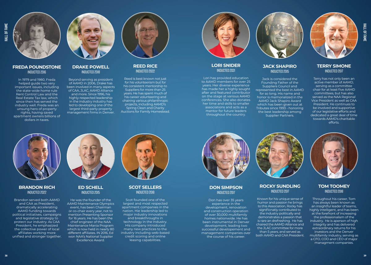 Beyond serving as president of AAMD in 2006, Drake has been involved in many aspects of CAA, JLAC, AAMD Alliance and more. Since 1996, his highly-respected leadership in the industry industry has led to developing one of the largest third-party property management firms in Denver.