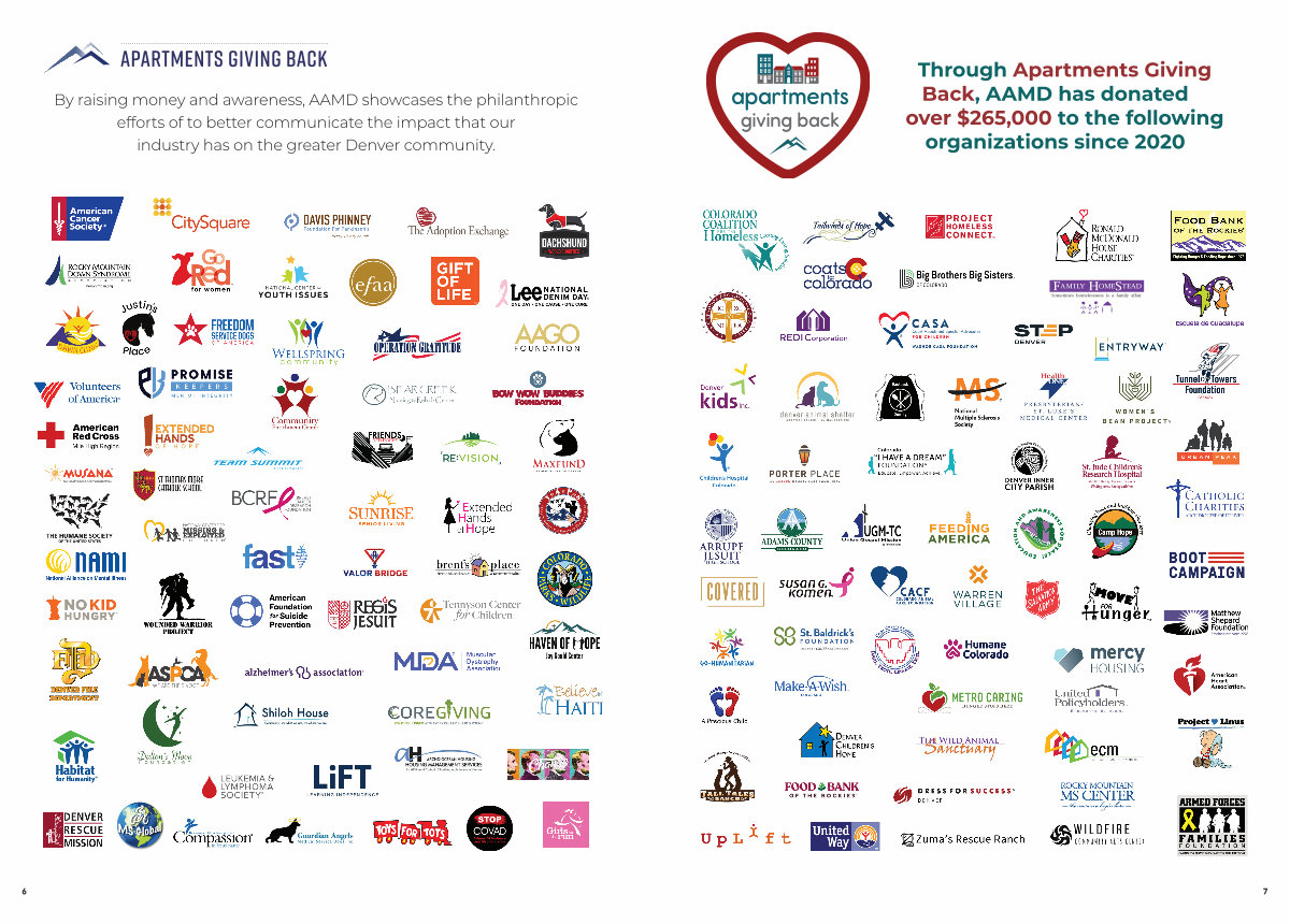 Through Apartments Giving Back, AAMD has donated over $ 265,000 to the following organizations since 2020