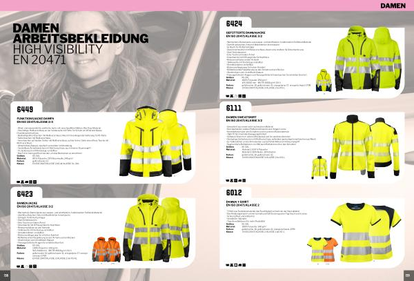WS: 8000 mm- MVTR: 8000 g / m ²/ 24 h Farben: gelb / marine-10, gelb / schwarz-11, orange / grau-17, orange / schwarz-1799 Klasse: EN ISO 20471 KLASSE 3; KLASSE 2 bei XS-XL