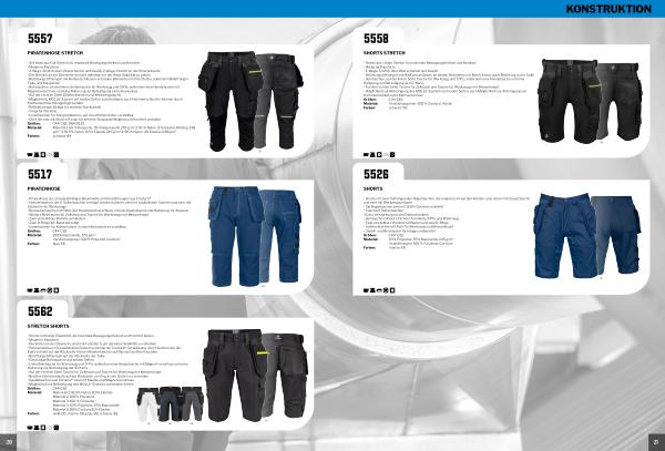 Material 2: 100 % Polyamid • Material 3: 100 % Polyester • Material 4: 65 % Polyester, 35 % Baumwolle • Material 5: 89 % Cordura, 11 % Elastan Farben: weiß-00, marine-58, grau-98, schwarz-99