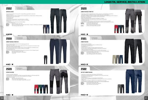 • Holstertaschen und Beinabschlüsse sind mit Cordura ® verstärkt, um die Haltbarkeit zu erhöhen Größen: C44-C62, D84-D120, C146-C156 Material: 65 % Polyester, 35 % Baumwolle •