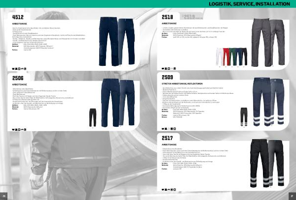 • Schlaufen unter den Gesäß- und Beintaschen zur Befestigung von Inbags Größen: C44 – C62, D84 – D120, C146 – C156 Material: 100 % Baumwolle, 200 g / m ² Farben: marine-58, schwarz-99