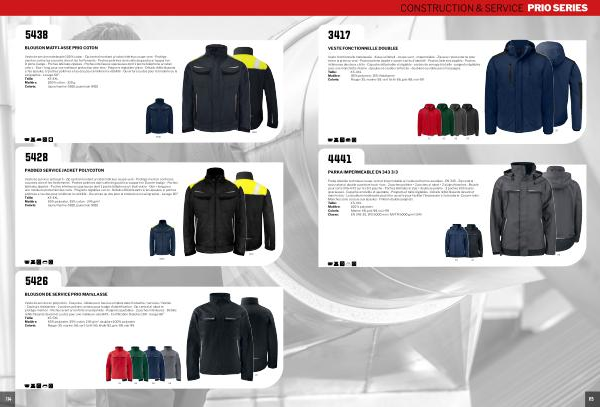 XS-5XL Matière: 65 % polyester, 35 % coton, 245 g / m 2, doublure 100 % polyester Coloris: Rouge-35, marine-58, vert forêt-66, khaki-82, gris-98, noir-99