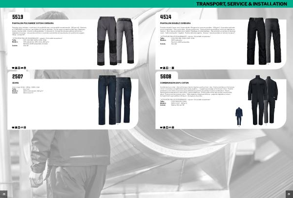 Combinaison en coton- Zip central sous rabat a / double ouverture haut + bas- Poches poitrines a / fermetures velcro + nombreux compartiments pour stylos, papiers,... + support pour badge a / fermeture velcro- Poches profondes s / les côtés a / ouverture pour atteindre les poches du pantalon sous la combinaison- Poche jambe gauche spacieuse a / rabat velcro + poche téléphone- Poche jambe droite pour stylos, outil et mètre pliant- Poches arrières a / rabat velcro- Taille réglable a / élastique intérieur- poignets réglables a / velcro- Compartiments genouillères intérieurs- 2 longueurs de jambe.