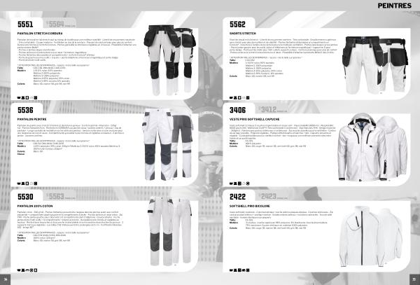 C44-62, D84-D120, C146-C156 Matière: 1: 65 % polyester, 35 % coton, 235g / m 2 Matériau 2: 91,5 % nylon, 8,5 % spandex Matériau 3: