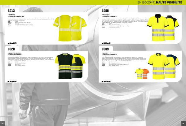 XS-4XL Matière: 100 % polyester, 140 g / m 2 Coloris: Jaune / noir-11, orange / gris-17, orange / noir-1799 Classe: EN ISO 20471 CLASSE 2