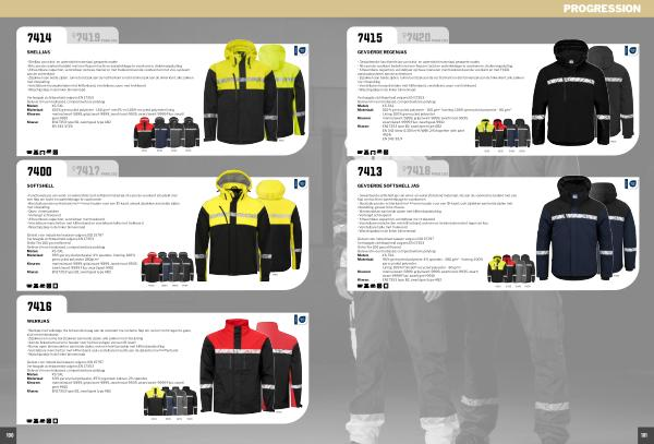 Verhoogde zichtbaarheid volgens EN 17353 Geleverd in een biobased, composteerbare polybag Maten: XS-5XL Materiaal: 100 % gerecycled polyester- 160 g / m ² met PU en 100 % recycled polyester lining Kleuren: marine / zwart-5899, grijs / zwart-9899, zwart / rood-9935, zwart / zwart-9999 Fluo: zwart / geel-9910 Klasse: EN17353 type B2, zwart / geel type AB2