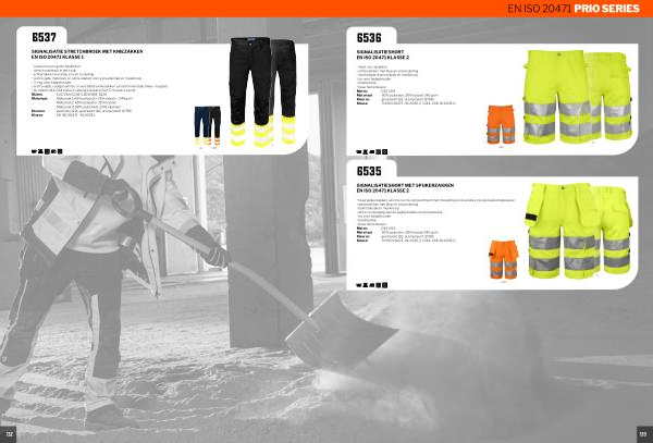 Materiaal 3: 90 % polyamide, 10 % elastaan Kleuren: geel / navy( 10), geel / zwart( 11), oranje / zwart( 1799) Klasse: EN ISO 20471- KLASSE 1