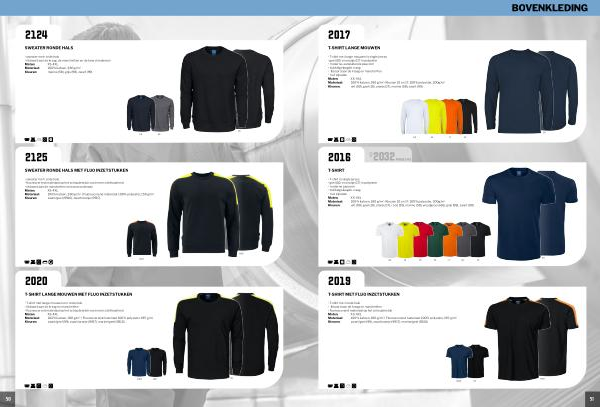 • met zijnaden Maten: XS-4XL Materiaal: 100 % katoen, 180 g / m ²• Kleuren 10 en 17: 100 % polyester, 200g / m ² Kleuren: wit( 00), geel( 10), oranje( 17), marine( 58), zwart( 99)