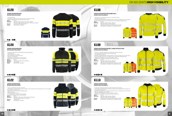 Materiaal 2: 90 % nylon, 10 % spandex Kleuren: geel / marine( 10), geel / zwart( 11), oranje / zwart( 1799) Klasse: EN ISO 20471- KLASSE 2: XS-S, KLASSE 3: M-4XL