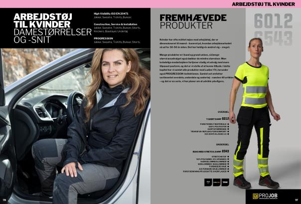 Mange produkter er i bund og grund unisex, så længe størrelsesudvalget også dækker de mindre størrelser. Men kvindelige medarbejdere fortjener stadig et udvalg med mere tilpasset pasform, og det er vi stolte af at kunne tilbyde. I dette kapitel har vi samlet alle produkter med Ladies’ Fit, herunder også PROGRESSION-kollektionen. Samlet set omfatter sortimentet overdele, underdele og undertøj – næsten 40 artikler – og det er en serie, vi har planer om at udvikle yderligere.