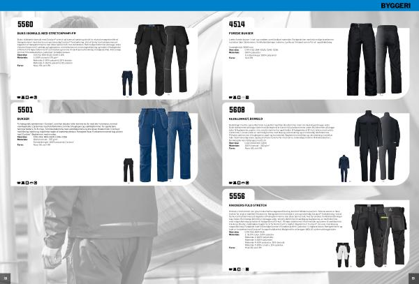 Kedeldragt med to-vejs lynlås foran, beskyttet med flap. Brystlommer med velcrolukning på begge sider. Dybe sidelommer på begge sider med åbninger til at kunne nå bukselommerne under. Brystlommer på begge sider til kuglepenne, papirer mm, venstre lomme har også holder til fastgørelse af ID-kort, lukkes med velcro. Lårlommer, i venstre side en rummelig lomme med klap og velcrolukning og en indvendig telefonlomme. På højre side lommer til kuglepenne, papir og tommestok. Baglommer med klap og velcrolukning. Justerbar talje med indvendig snøre, også justerbare manchetter med velcro. Indvendige lommer til knæbeskyttere. Benlængden kan forlænges med 5 cm. Størrelse: C42-C64( C142-C164) Materiale: 100 % bomuld- 320 g / m 2 Farve: